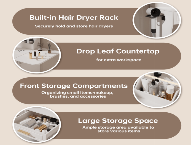 A cluttered makeup space can be overwhelming and time-consuming. One of the most appealing aspects of a vanity desk is its built-in storage—drawers, shelves, and compartments designed to hold brushes, palettes, skincare, and accessories neatly in place. Not only does this enhance efficiency, but it also helps extend the life of your products by keeping them clean and protected.